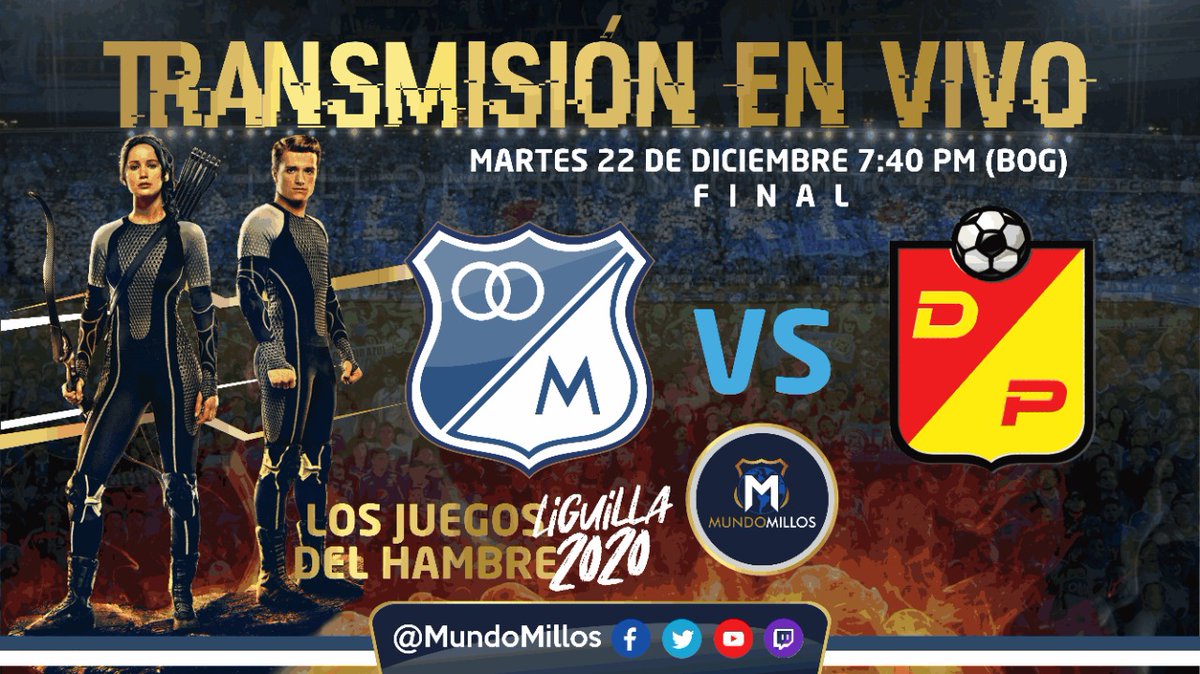 Mundo Millos Pa Twitter Transmision En Vivo Del Partido Entre Millonarios Y Deportivo Pereira Por La Final De La Liguilla Los Esperamos A Partir De Las 7 45pm Https T Co Opwpr7xz1m Https T Co E7oi6aqha4 from pbs.twimg.com Poco a poco, subió el nivel y quiere dar el golpe. A continuación, todos los detalles del partido. Millonarios ha jugado 10 partidos antes de este encuentro, ganando 8, perdiendo 0 y empatando 2. Menos de 6.5 tarjetas se han mostrado en los últimos 7 partidos de millonarios como local por liga. Respecto al partido de ida, pereira reconoció que en el primer tiempo el tolima puso a millonarios en dificultades, pero afortunadamente se consiguió nivel en la segunda mitad, aunque se sufrió la expulsión del 'chicho' arango. La alcaldía de bogotá ha confirmado que ya es posible utilizar el estadio el campín, para que tanto millonarios como santa fe puedan disputar sus encuentros. Deportivo pereira ha jugado 10 partidos antes de este encuentro, ganando 0, perdiendo 6 y empatando 4. Al frente está pereira, la revelación de este torneo.